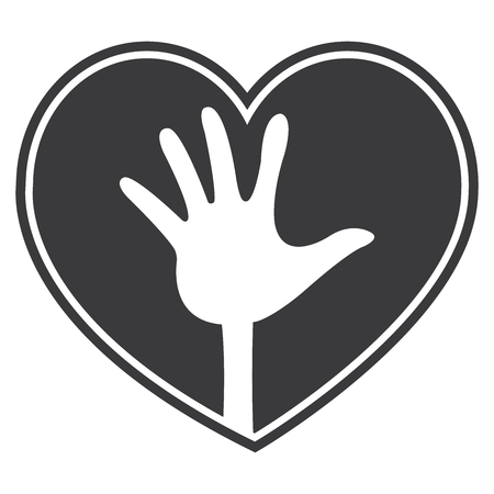 挙手と黒ハート記号アイコン ステッカーまたは分離の白い背景にラベルを付ける の写真素材 画像素材 Image
